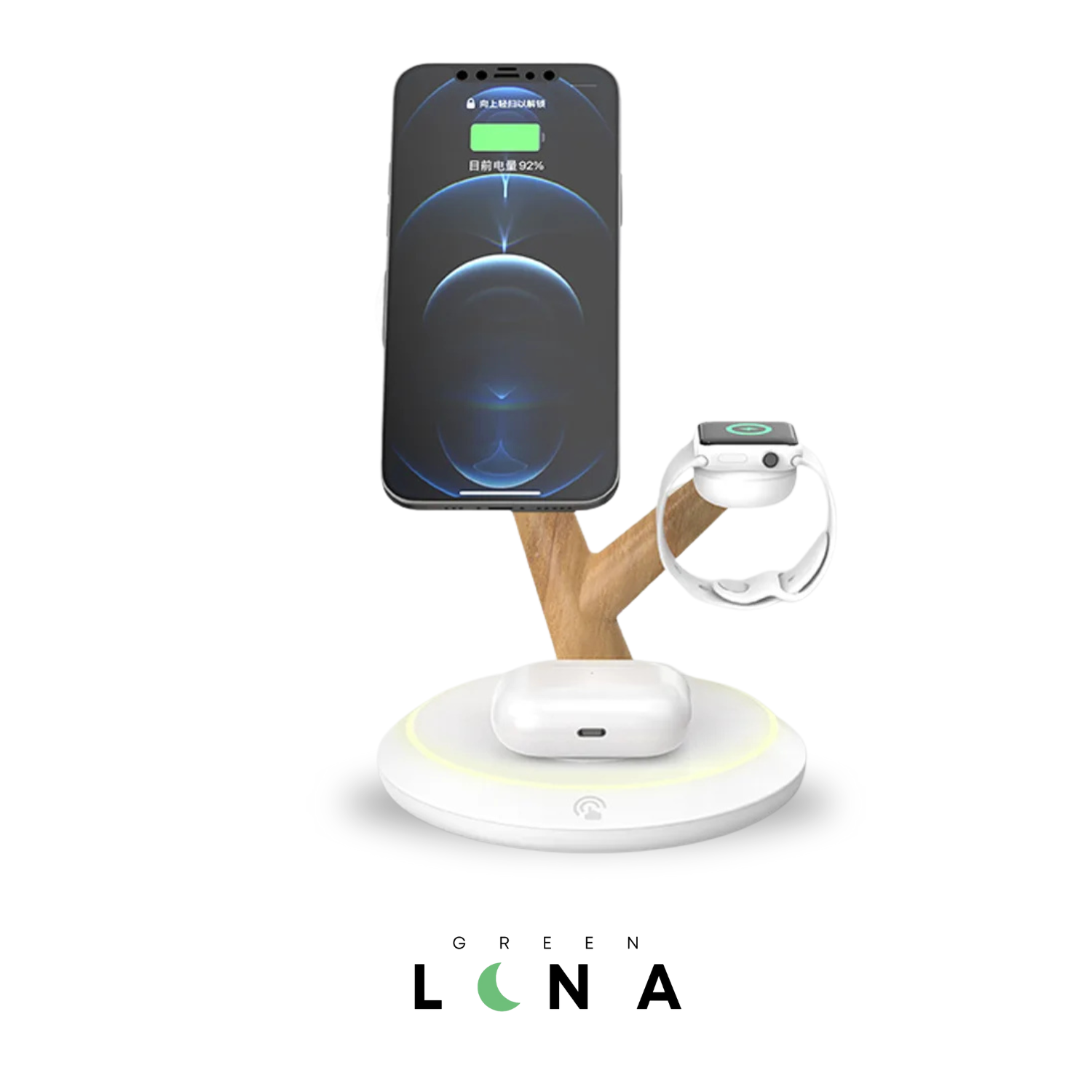 Cette station de charge sans fil intègre un éclairage LED subtil, permettant de visualiser l’état de charge en un coup d’œil.