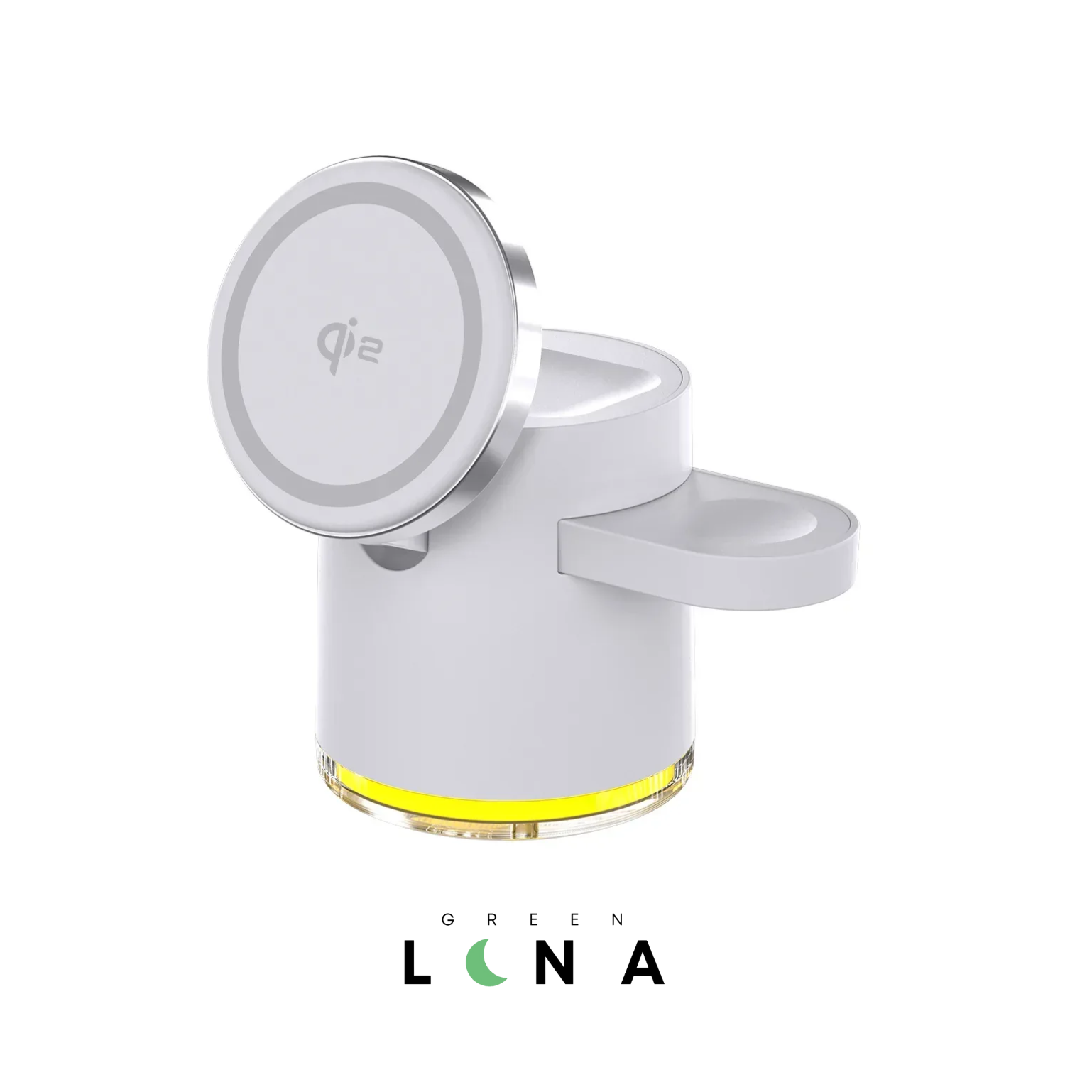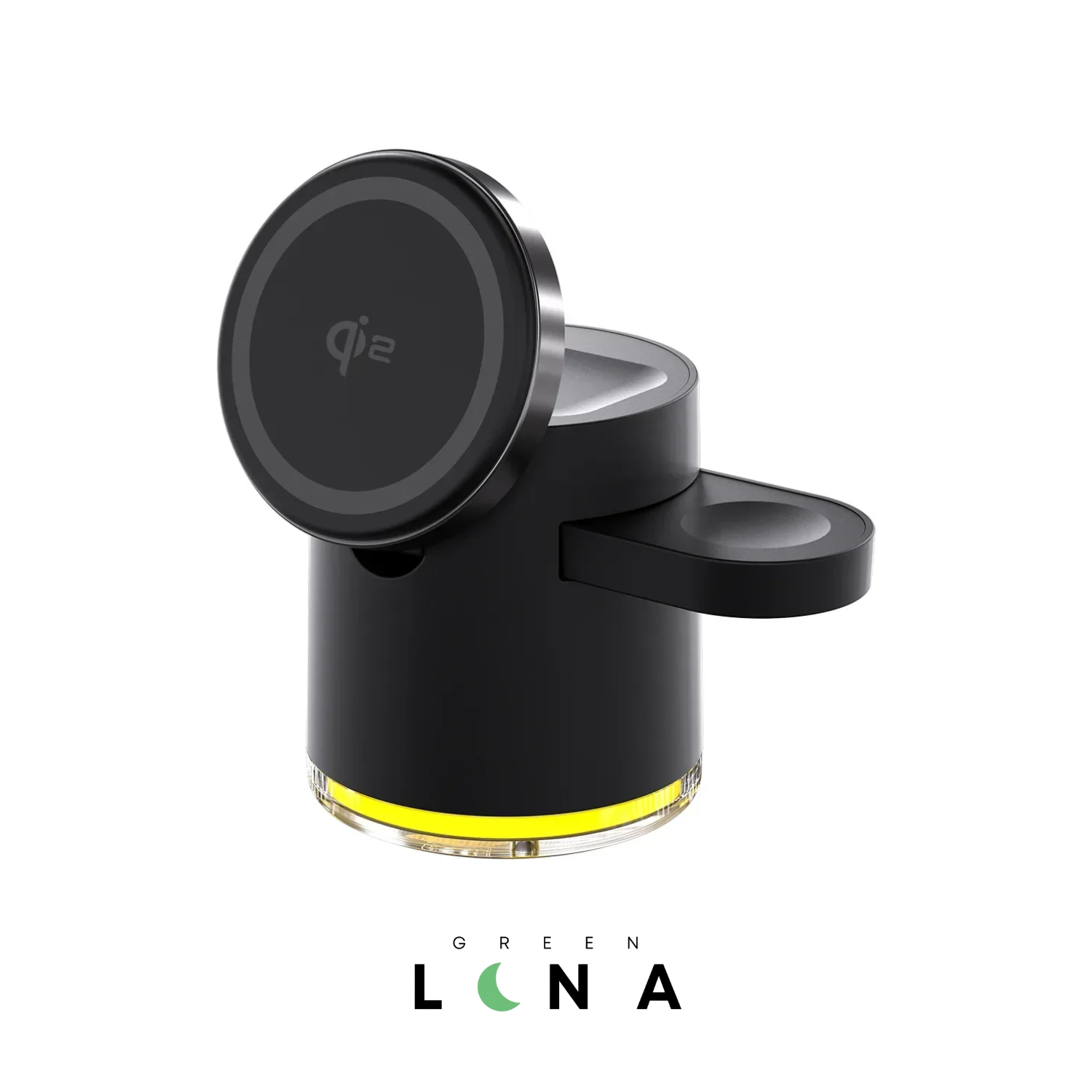 Équipée de la technologie Qi2, cette station de charge assure une alimentation rapide et stable, tout en garantissant une compatibilité étendue avec les derniers modèles d’iPhone, d’AirPods et d’Apple Watch. La charge sans fil évite l’encombrement des câbles et permet une recharge instantanée en posant simplement l’appareil sur le support.