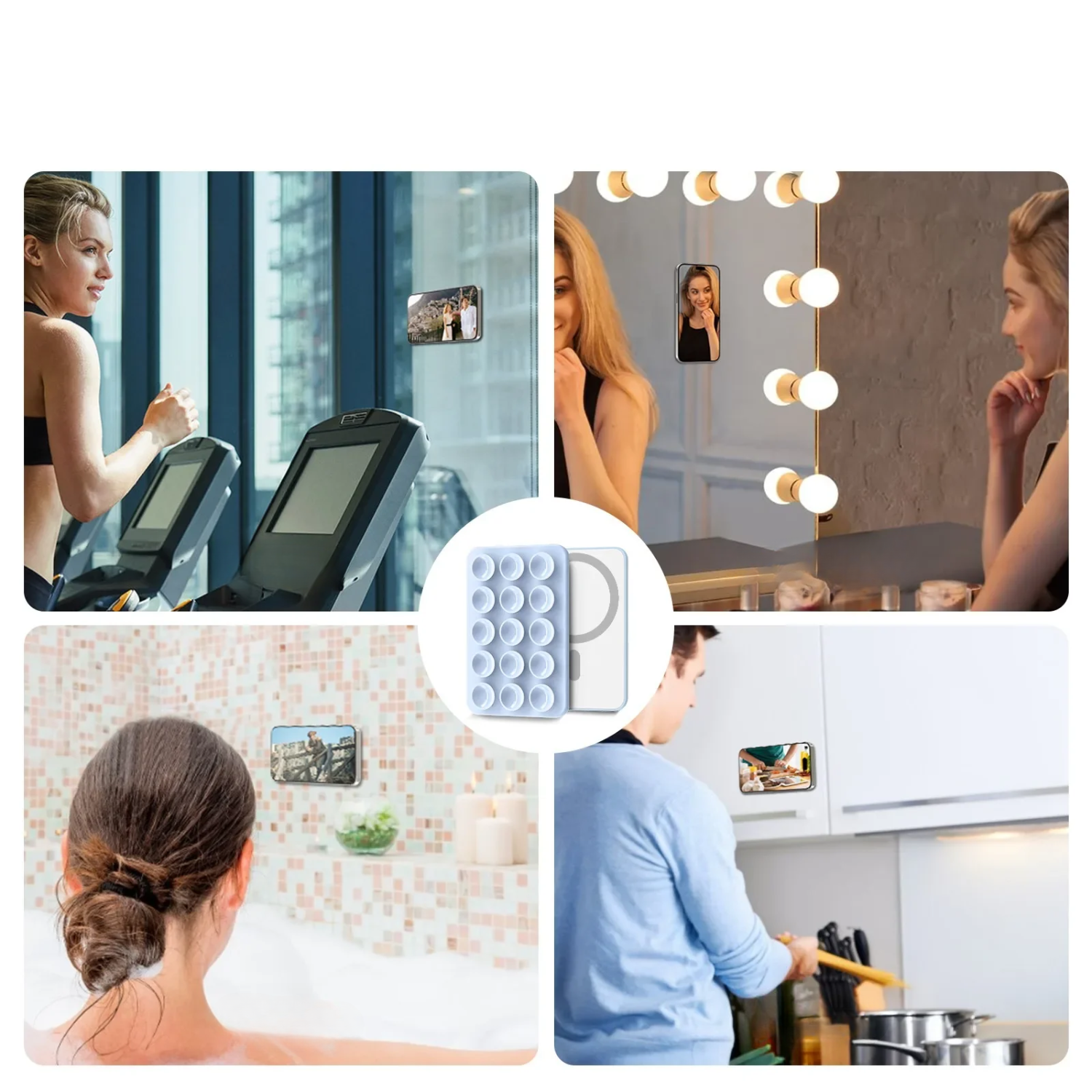 Cette ventouse magnétique en silicone est la solution idéale pour maintenir votre iPhone MagSafe en toute sécurité, sans encombrer votre espace. Grâce à son adhérence puissante et son matériau en silicone souple, elle permet de fixer votre téléphone sur différentes surfaces lisses, que ce soit sur un bureau, une table, une vitre ou un mur.